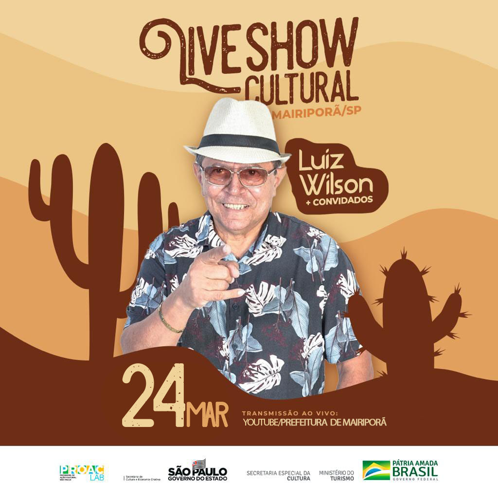 LIVE SHOW CULTURAL – MAIRIPORÃ 24 de março de 202224 de março de 2022 admin Assista hoje através do youtube da Prefeitura de Mairiporã às 20h Assista HOJE a LIVE SHOW gravada exclusivamente para a cidade de Mairiporã! Luiz Wilson é reconhecido como Mestre da Cultura Popular brasileira pela Política de Cultura Viva. Acesse o link e aprecie: https://www.youtube.com/c/PrefeituraMunicipaldeMairipor%C3%A3 Notícia
