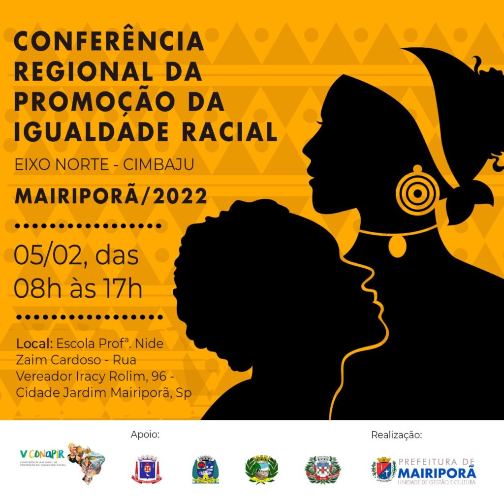 No próximo sábado, dia 05 de fevereiro de 2022, Mairiporã sediará a CONFERÊNCIA REGIONAL DA PROMOÇÃO DA IGUALDADE RACIAL. A atividade tem como foco debater e planejar políticas públicas para as esferas municipais, estaduais e federais.